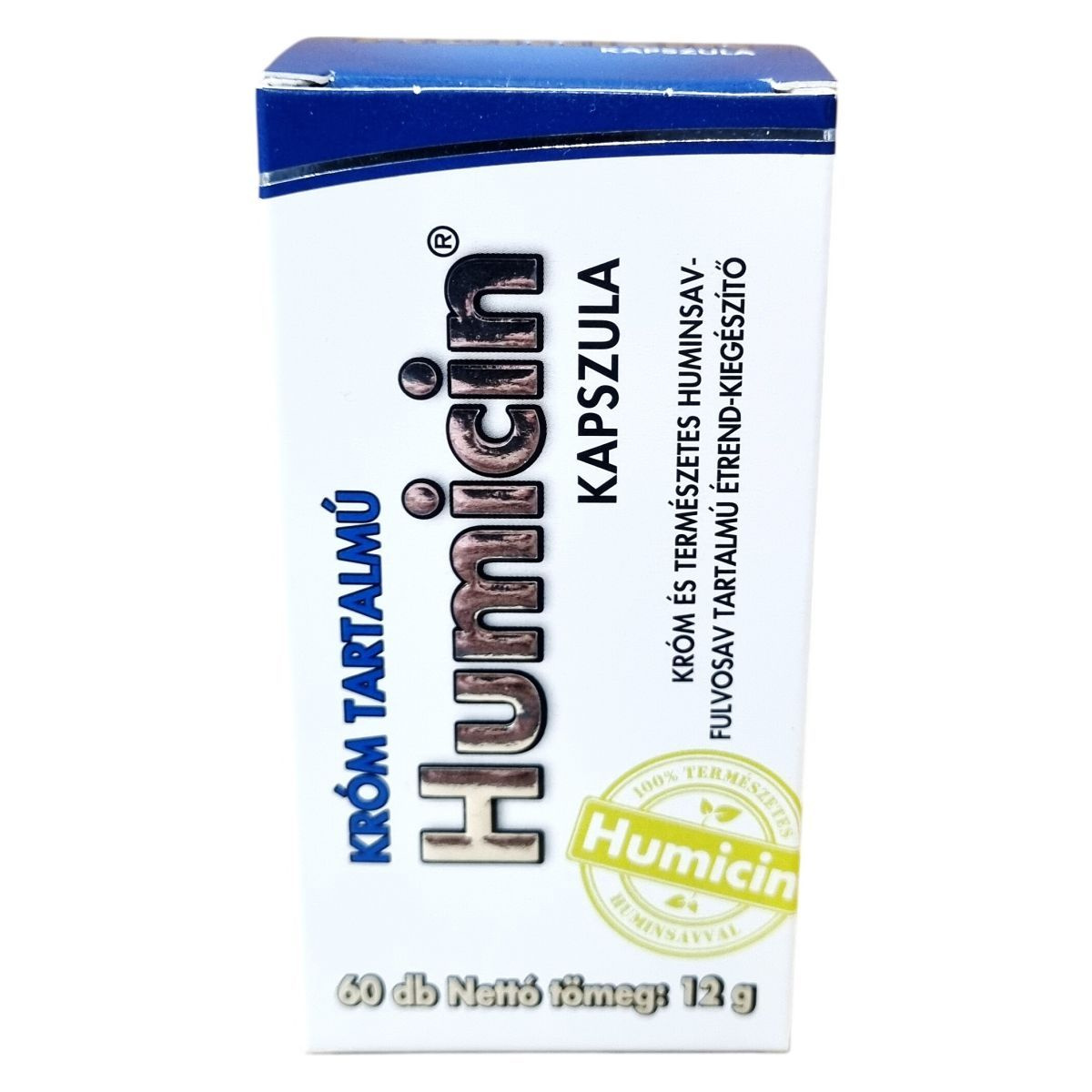 A Humicin króm és természetes huminsav-fulvosav tartalmú étrend-kiegészítő. A termék fogyasztása főként kiegyensúlyozatlan táplálkozás vagy szigorú diéta esetén ajánlott. A króm hozzájárulhat a makro-tápanyagok normál anyagcseréjéhez és a normál vércukorszint fenntartásához. A termék kapszula formában készül és 60 kapszula, nettó 12 gramm kiszerelésben kapható.