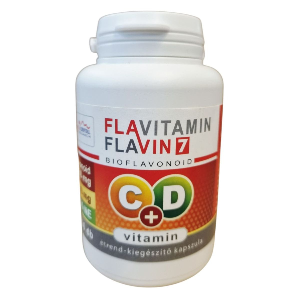 A FLAVITAMIN C+D-vitamin kapszula egy étrend-kiegészítő, amely C-vitamint és D-vitamint tartalmaz, valamint polifenolokat a Flavin 7 bioflavonoid komplexből. A termék hozzájárulhat az immunrendszer normál működéséhez és az egészséges csontozat fenntartásához. A kapszula összetevői között megtalálható a vörös szőlő, cirok, feketeszeder, feketeribizli, fekete cseresznye, pirosribizli, szilva és alma héj szárítmány, amelyek természetes antioxidánsokat biztosíthatnak. A termék forgalmazója a Slimbios Kft., és a kapszulák tárolása száraz, hűvös helyen javasolt.