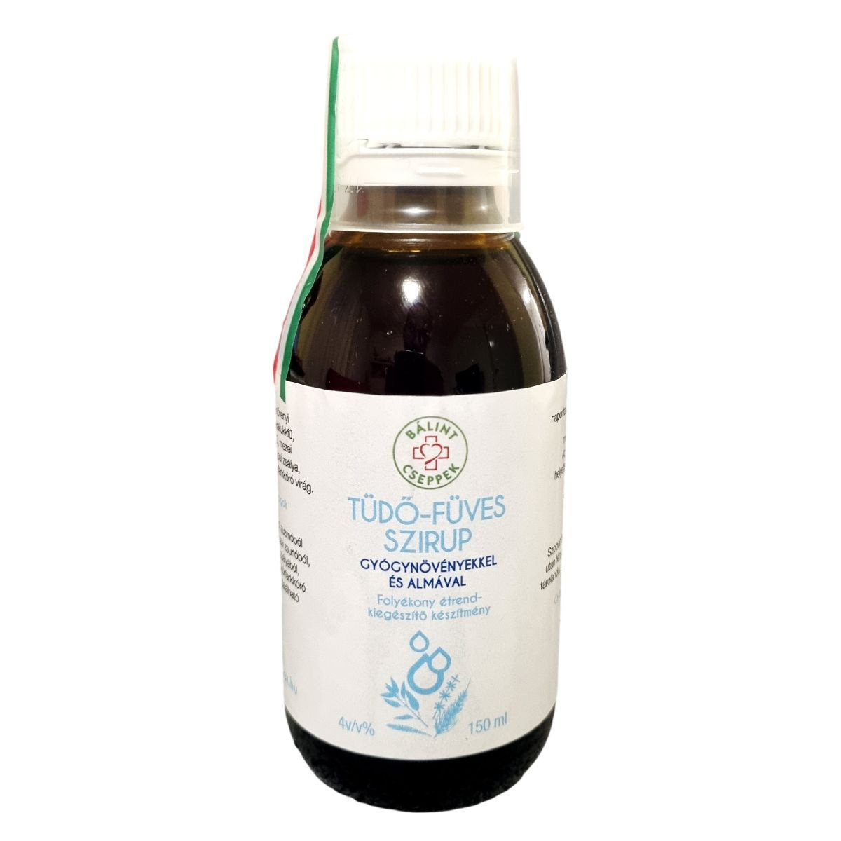 A BÁLINT Cseppek Tüdő-Füves szirup 4 térfogatszázalék alkoholt tartalmazó, növényi alapú folyékony étrend-kiegészítő készítmény, amely gyógynövényekhez, például kakukkfűhöz, izlandi zuzmóhoz, cickafarkfűhöz, mezei zsurlóhoz és másokhoz valamint 47%-os almalé sűrítményhez készül. A napi 7 ml-es adag gyógynövényenként kisebb mennyiségű hatóanyagot tartalmaz, amelyek hozzájárulhatnak a légutak egészségéhez. A termék szobahőmérsékleten, gyermekektől elzárva tárolandó. Nettó térfogata 150 ml, Magyarországon gyártották és forgalmazzák.
