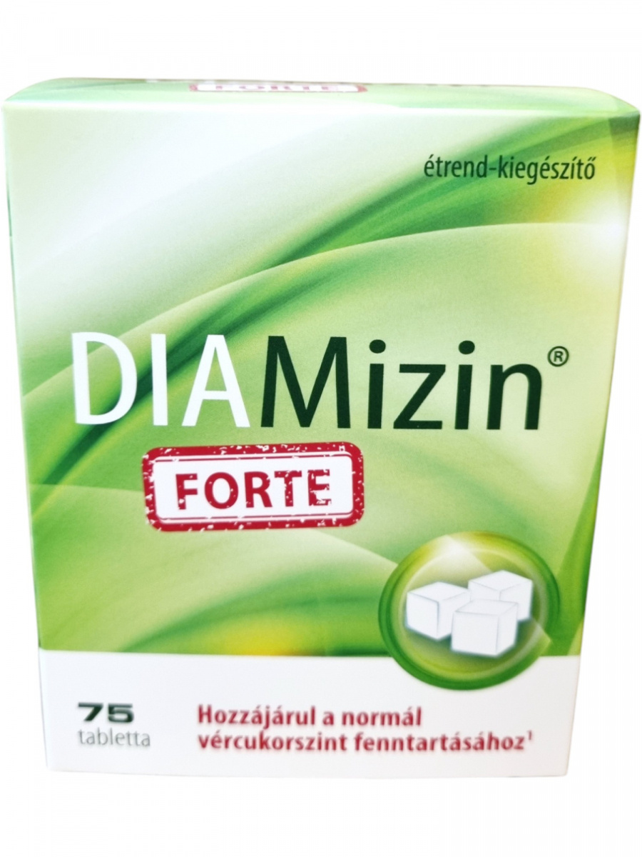 A DIAMizin Forte étrend-kiegészítő Gymnema sylvestre (gurmar) és eperfa levélkivonatot tartalmaz, amelyek hozzájárulhatnak a normál vércukorszint fenntartásához. A Gymnema sylvestre csökkentheti az étvágyat, így szerepet játszhat a testsúlycsökkentő étrend eredményességében. Az eperfa levélkivonat a szénhidrát-anyagcsere egyensúlyának megőrzését támogathatja. A B6- és B12-vitamin a fáradtság és kifáradás csökkentésében, valamint a normál homociszteinszint fenntartásában segíthet, míg a króm hozzájárulhat a normál vércukorszint szabályozásához. A készítmény 75 db tablettát tartalmaz, nettó tömege 51 g.