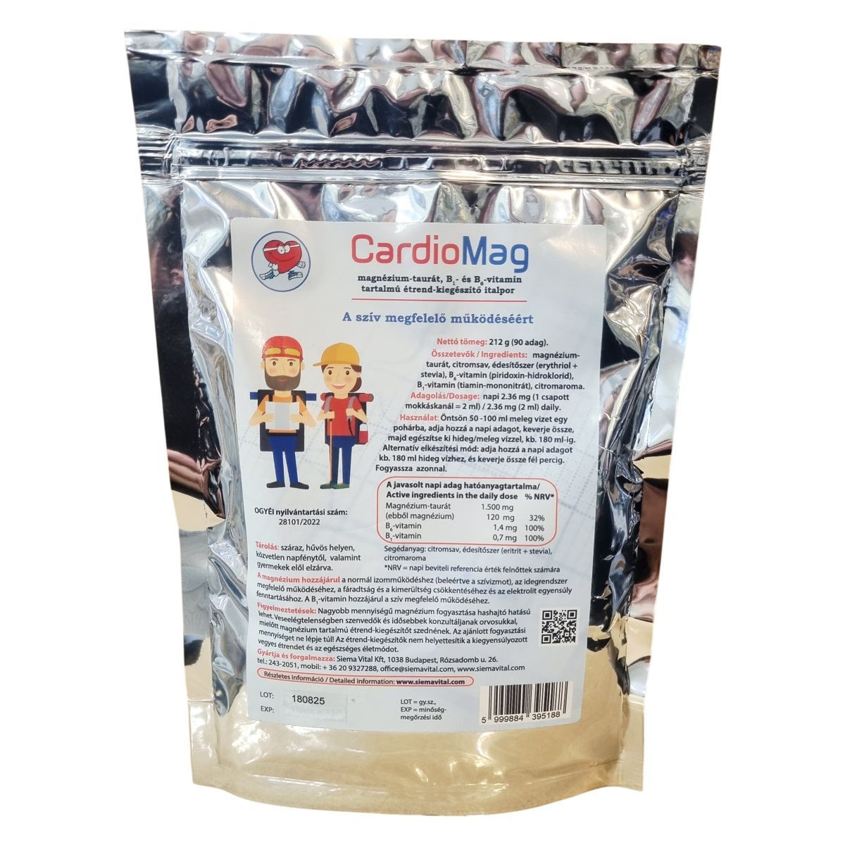 A CardioMag étrend-kiegészítő italpor magnézium-taurátot, továbbá B1- és B6-vitaminokat tartalmaz, melyek együttesen hozzájárulhatnak a szív megfelelő működéséhez. A magnézium szerepet játszhat az izomműködésben, ide értve a szívizmot, az idegrendszer megfelelő működésében, a fáradtság és kimerültség csökkentésében, valamint az elektrolit egyensúly fenntartásában. A készítmény segédanyagai közé tartozik a citromsav, természetes alapú édesítőszer (eritritol és stevia) és citromaroma, amelyek kellemes ízt biztosítanak az italpornak. Az adagolás során a napi adagot meleg vagy hideg vízhez kell keverni, majd azonnal fogyasztani. Az OGYÉI által nyilvántartott formula körültekintő tárolást igényel, és különösen ajánlott, hogy veseelégtelenségben szenvedők, illetve idősebb személyek orvosi tanácsot kérjenek a fogyasztás megkezdése előtt. A javasolt napi bevitelt nem szabad túllépni, és ez az étrend-kiegészítő nem helyettesíti a változatos, egészséges táplálkozást és életmódot.