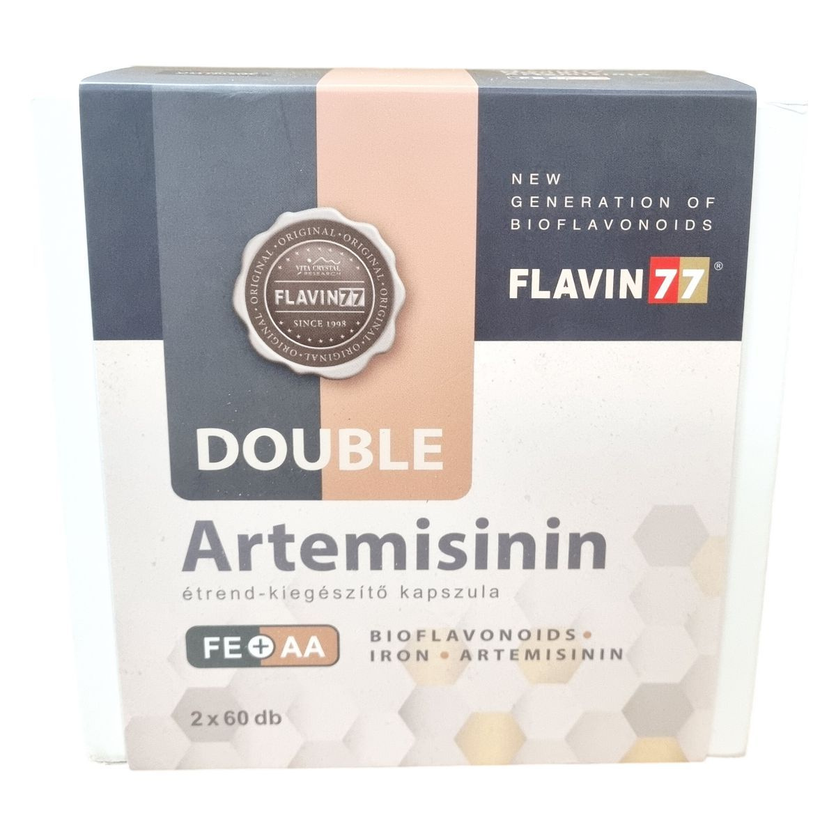 A Flavin77 Double Artemisinin kétféle kapszulát tartalmazó étrend-kiegészítő. A FE kapszula szerves kötésű vasat és nagy mennyiségű polifenol/flavonoid komplexet tartalmaz, míg az AA kapszula Artemisia annua levél kivonatból származó artemisinint és bioflavonoidokat biztosít. A készítmény összetevői között számos gyümölcs, virág, mag, gyógynövény, fűszer, gyökér és levél szárított őrleménye található.