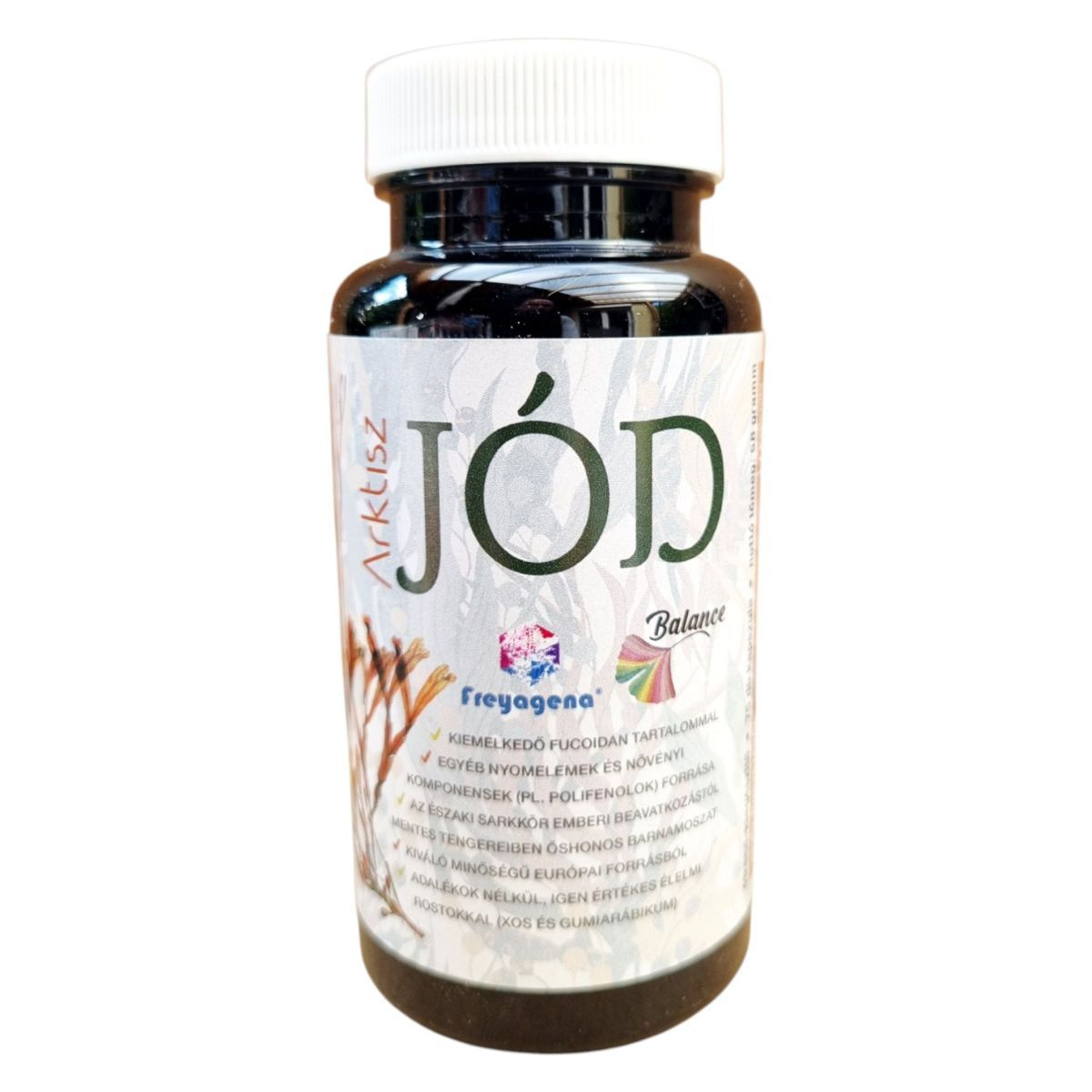 Az Arktisz Jód étrend-kiegészítő a Freyagena márkától származik, és 75 kapszulát tartalmaz. A termék kiemelkedő fucoidan tartalommal rendelkezhet, és az északi sarkkör emberi beavatkozástól mentes tengereiben őshonos barnamoszatból készülhet. Kiváló minőségű európai forrásból származik, és adalékok nélküli, értékes élelmi rostokat tartalmazhat, mint például XOS és gumiarábikum. A termék Magyarországon fejlesztett és gyártott, és a Nutribalance Kft. forgalmazza. Az étrend-kiegészítő nem helyettesíti a kiegyensúlyozott étrendet és az egészséges életmódot, és az ajánlott mennyiséget nem szabad túllépni.