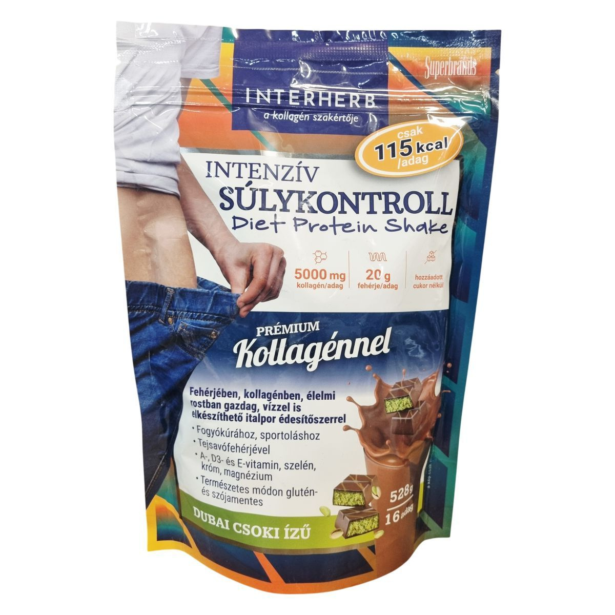 Az INTERHERB INTENZÍV SÚLYKONTROLL Diet Protein Shake egy dubai csoki ízű italpor, amely vízzel vagy ízlés szerint tejjel, tejhelyettesítő növényi itallal készíthető el. Alacsony cukortartalmának és magas fehérjetartalmának köszönhetően támogatni tudja a fogyókúrát és a súlykontrollt, valamint segítheti az éhségérzet csökkentését a telítő hatású rostjai által. A készítmény tartalmaz tejsavófehérjét és hidrolizált szarvasmarha kollagént, valamint A-, D3- és E-vitamint, szelént, krómot és magnéziumot a vitalitás fenntartásához. Glükomannán tartalma (2 g/adag) hozzájárulhat a testtömeg csökkentéséhez egy csökkentett energiatartalmú étrend keretein belül, különösen, ha napi bevitele eléri a 3 g-ot. A termék glutén- és szójamentes, a gluténmentes rizsgyöngyök roppanós élményt adnak fogyasztáskor. Két elkészítési módja lehetséges: shake-ként vagy pudingként, utóbbi 5-10 perc alatt sűrűsödik be, és hűtve ajánlott fogyasztani. Az alacsony kalóriatartalom miatt különösen ajánlott sportolók és fogyókúrázók számára, illetve időseknek, akik étkezési nehézségekkel küzdenek. A termék nem fogyasztható önmagában a fulladásveszély miatt, naponta legfeljebb 3 adag ajánlott.